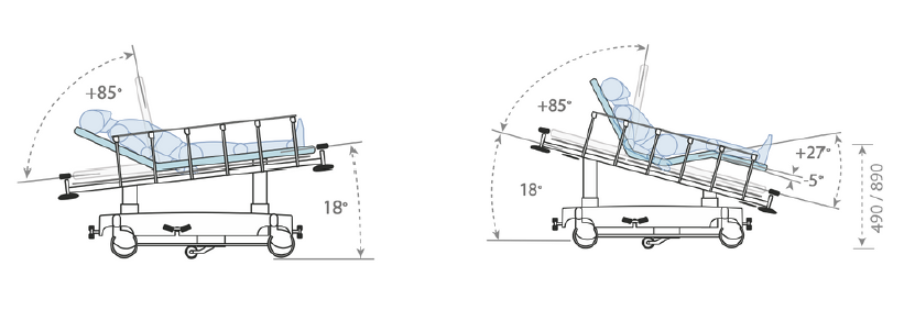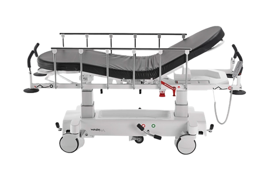 - volitelné příslušenství: centrální brzdový systém, antistatické kolečko, držák na papírovou roli, neklouzavá matrace (10 cm), infuzní stojan s držákem